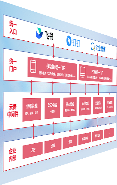 对协作平台提供支持服务,,支持企业应用与协作平台对接,,,,包含组织同步、、消息集成、、、、待办集成等。。支持目前主流的协作平台:钉钉、、企微和飞书。。